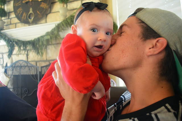 Jesse blessed our baby girl over Christmas break on December 22nd. Due to the craziness of the holiday and with Travis' wedding we decided to bless Conley in my parents home with family and a couple close friends. Conley cried hysterically just about the entire night and all the way through the blessing, which I think was because of a combination of her not liking being draped in a huge dress and being overwhelmed by the mass of people that came. Conley wore the dress that my grandma bought for me to wear at my blessing and then my sister wore it as well. It came with dainty lace booties and a bonnet, which there was no chance I was getting that on Conley that night. It was an intimate setting and a unique experience that I will remember forever. It was a special night centered around our little babe that has has so much support from family and friends even before she came to us.